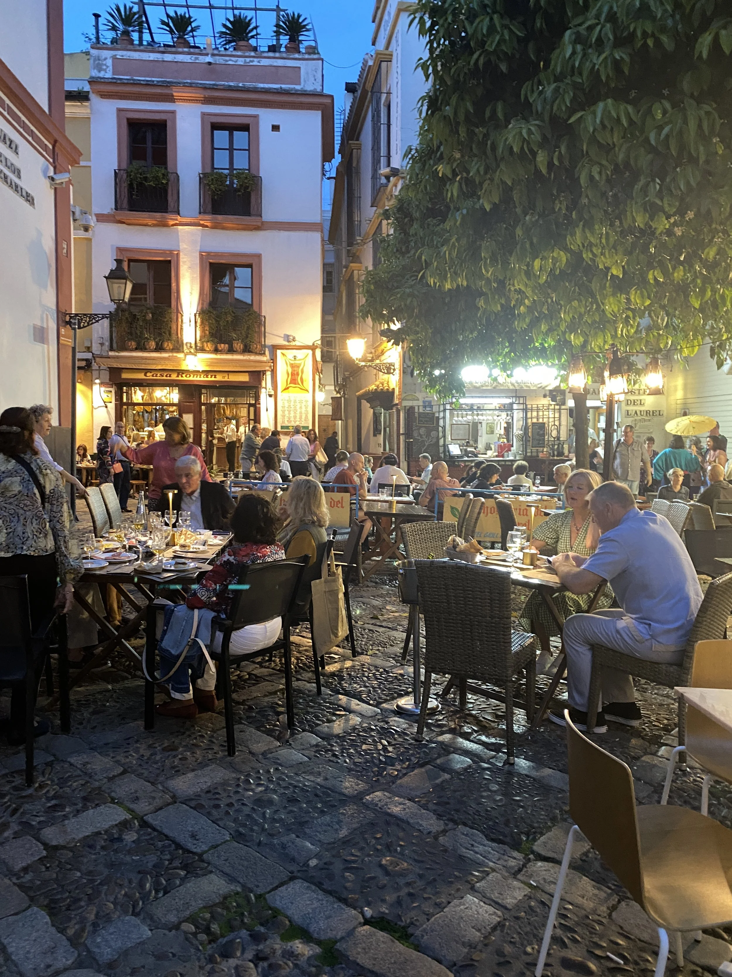 Sevilla is Spain’s fourth largest city, after Madrid, Barcelona, and Valencia. Though there is some daytime cruise traffic in the tourist areas, Sevilla is not nearly as crowded or touristed as Barcelona. One of my colleagues told me she thought Sevilla was so much more authentically Spanish and I have to agree with her. Though there are tourists, the residents of Sevilla seem to operate outside of the tourist realm. The city welcomes strolling, relaxing with a gelato or around a table with drinks and tapas, or quietly walking or sitting in the many squares and parks.